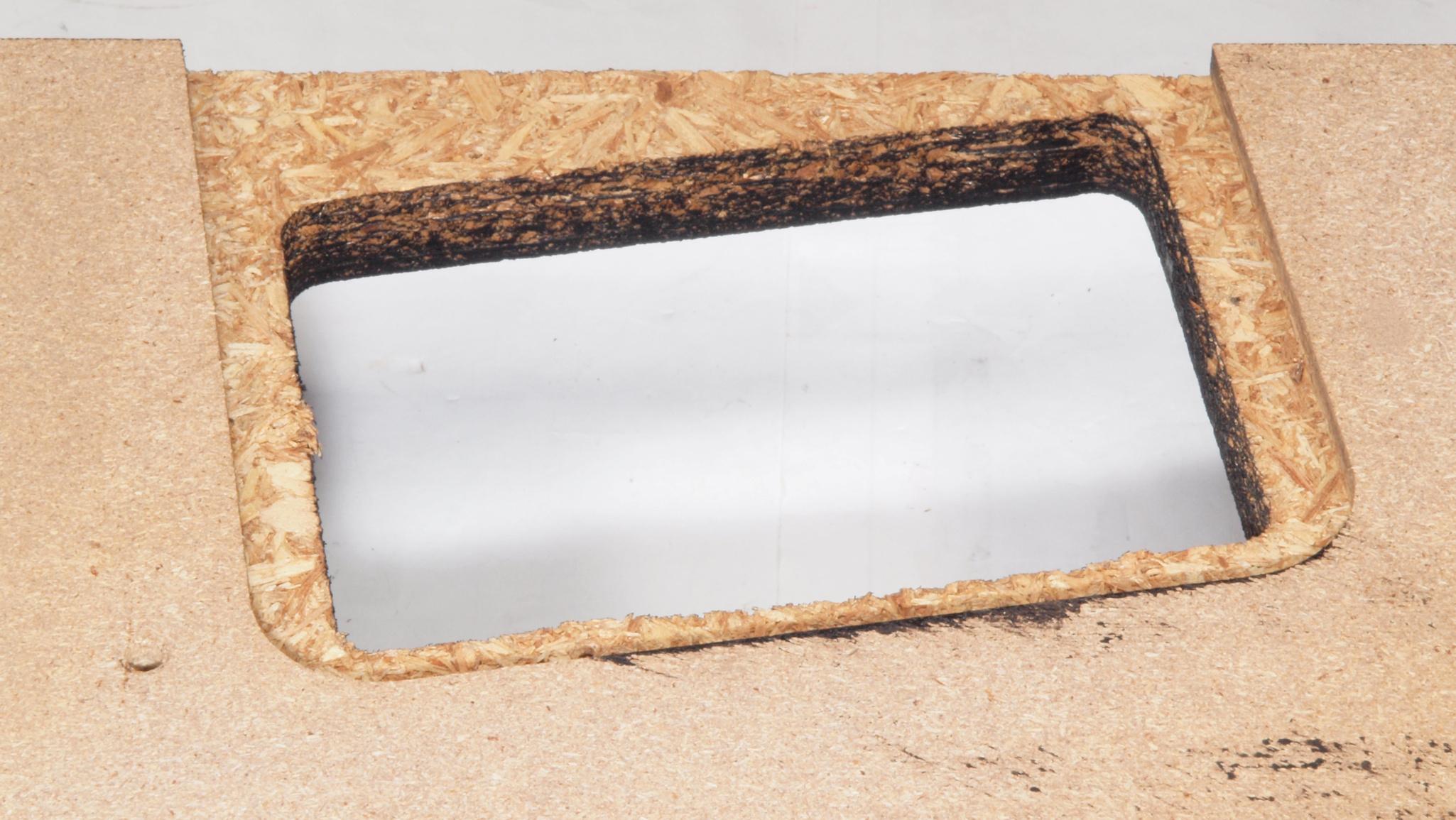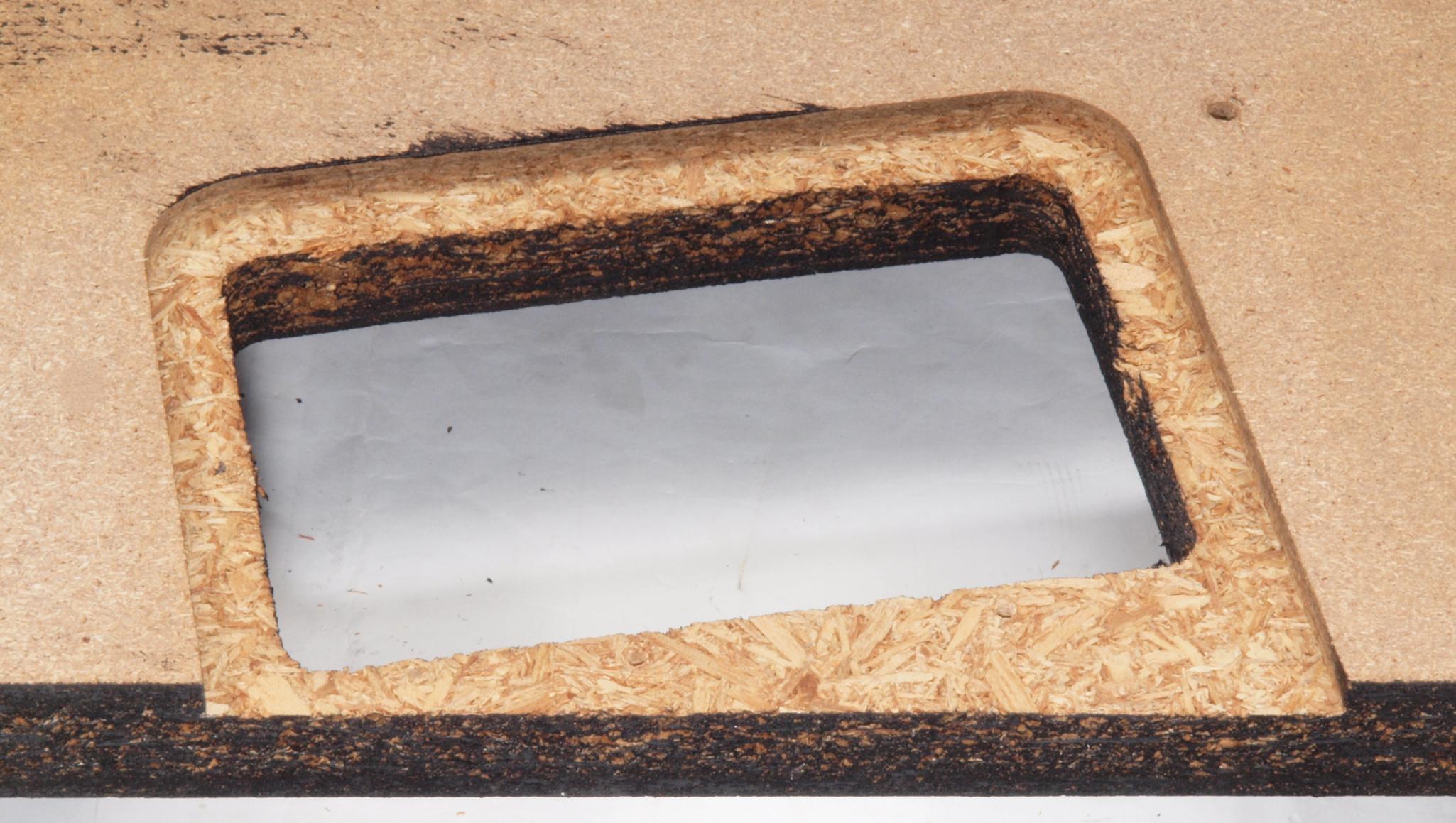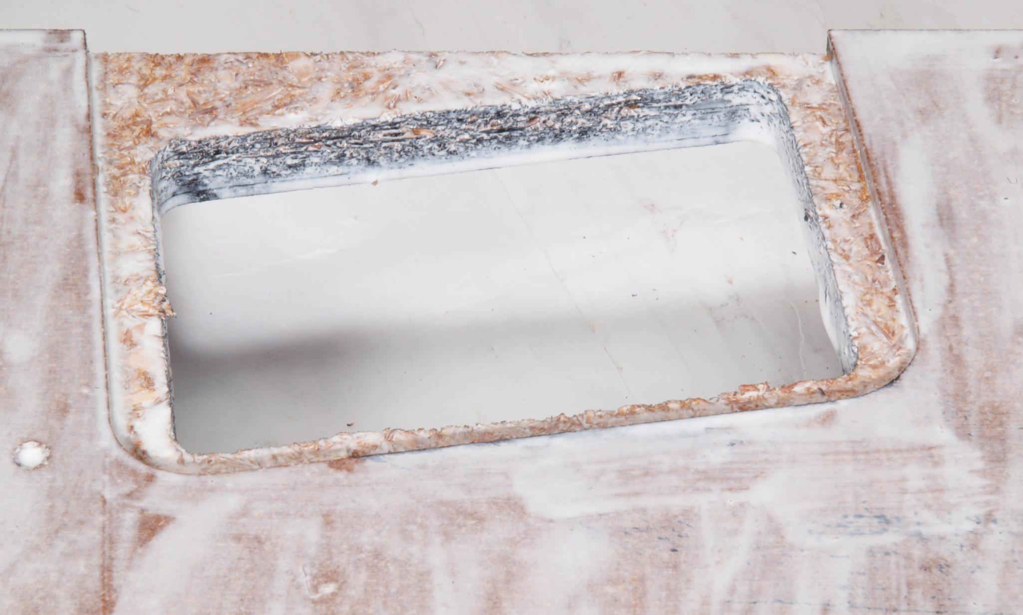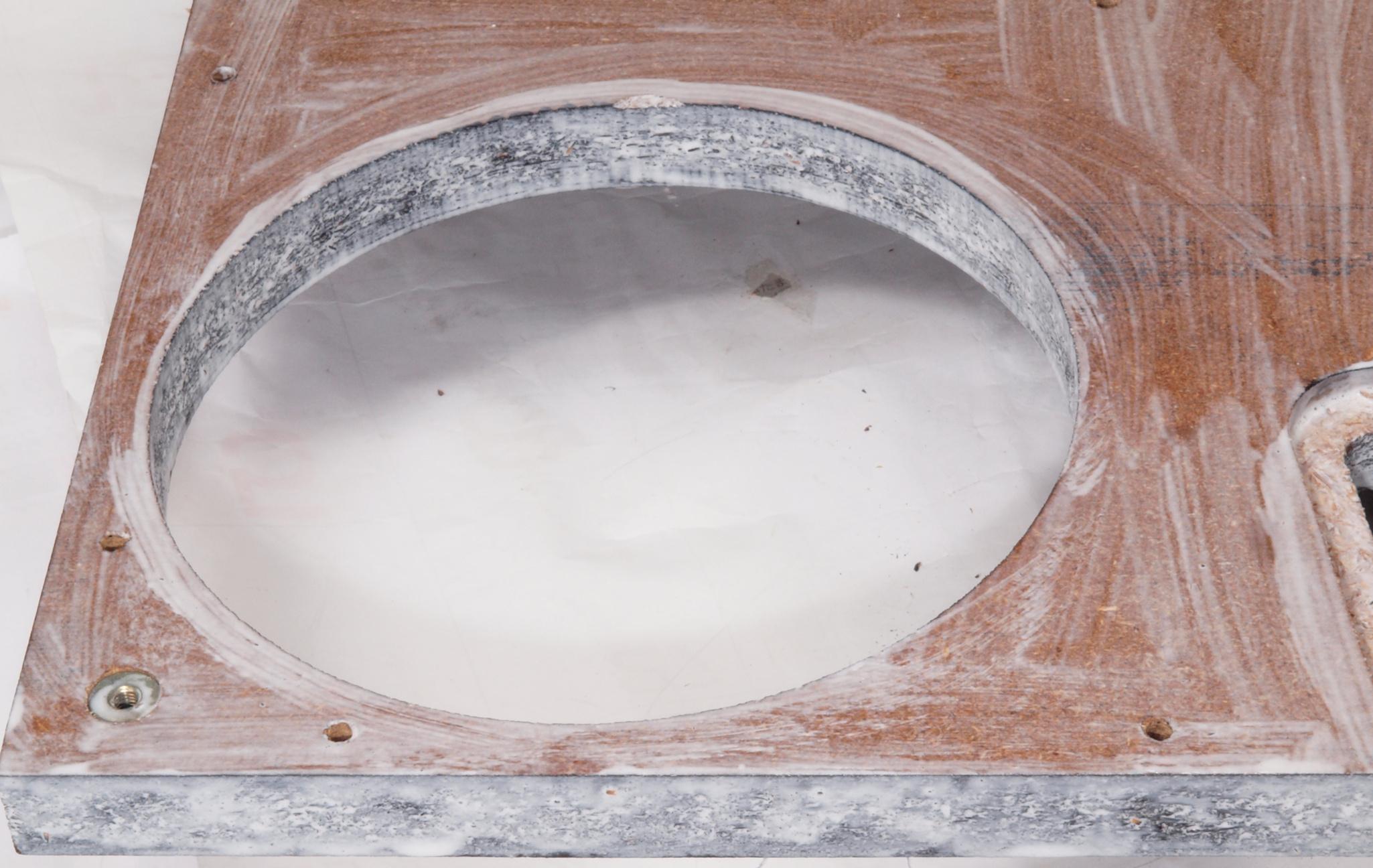 W35. 修理中 操作部取付穴、反対側。 圧縮材にボンドを染みこませる。