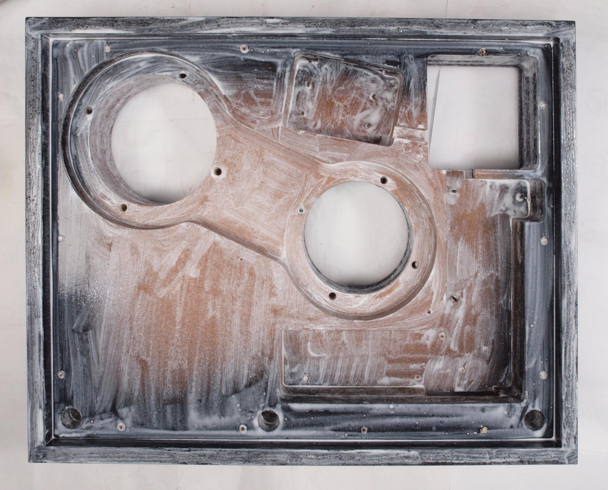 W26. 修理後 モーター取付穴、タンテーブル軸受取付穴、反対側。 更にペンキを塗る。