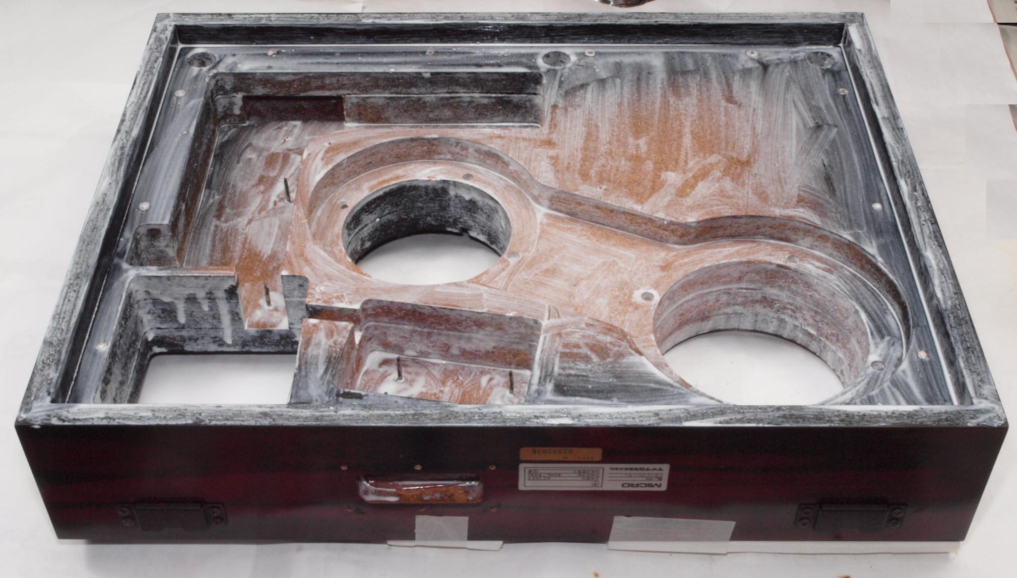WE1. 修理中 プラッター軸取付側架台、腐蝕している。