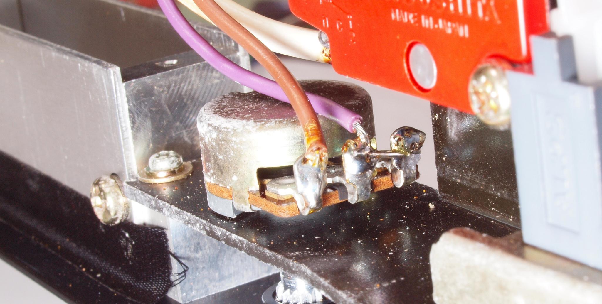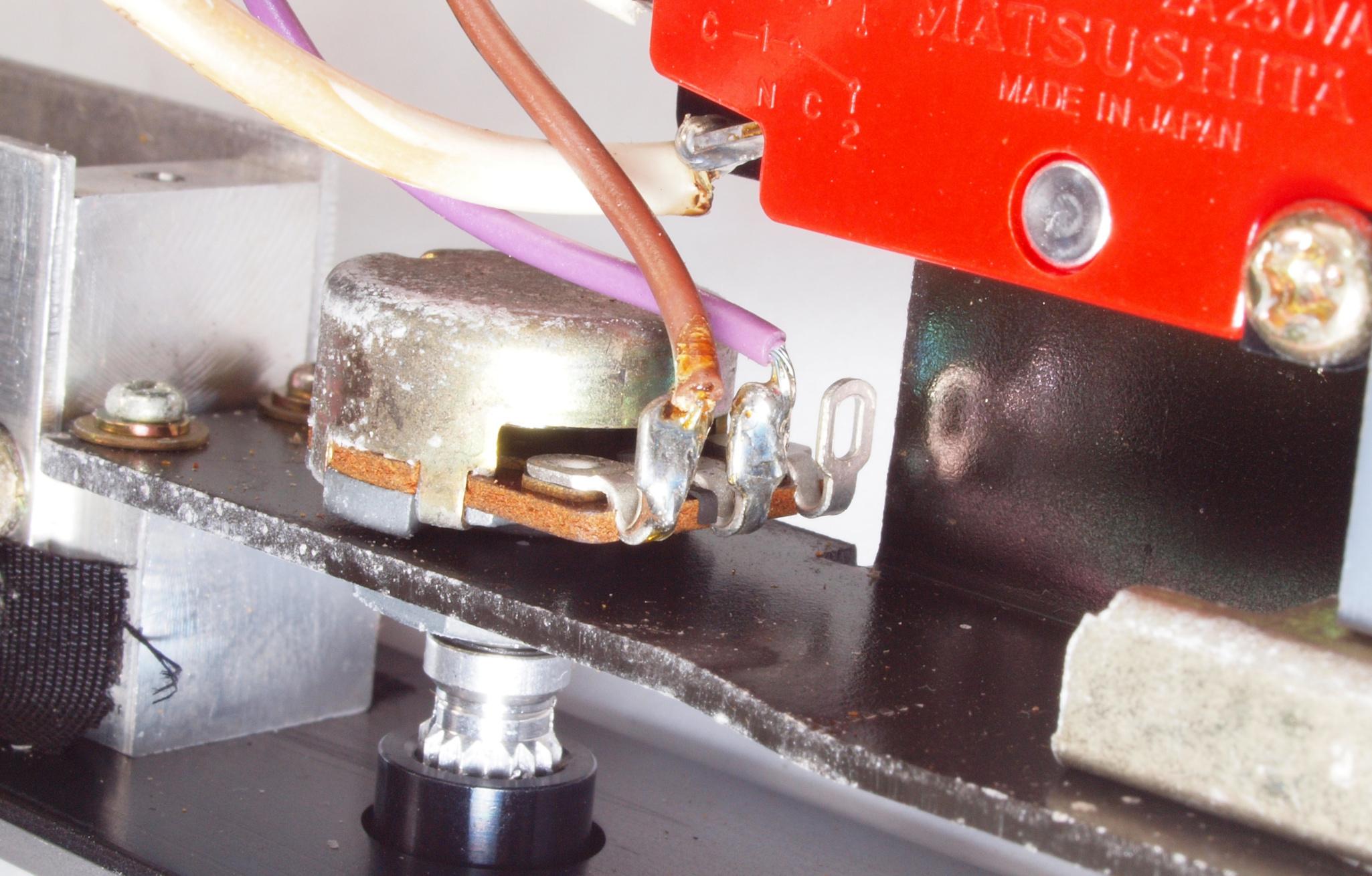 C93. 修理(半田補正)後 表示部及び 33/45切り換SW基板裏。
