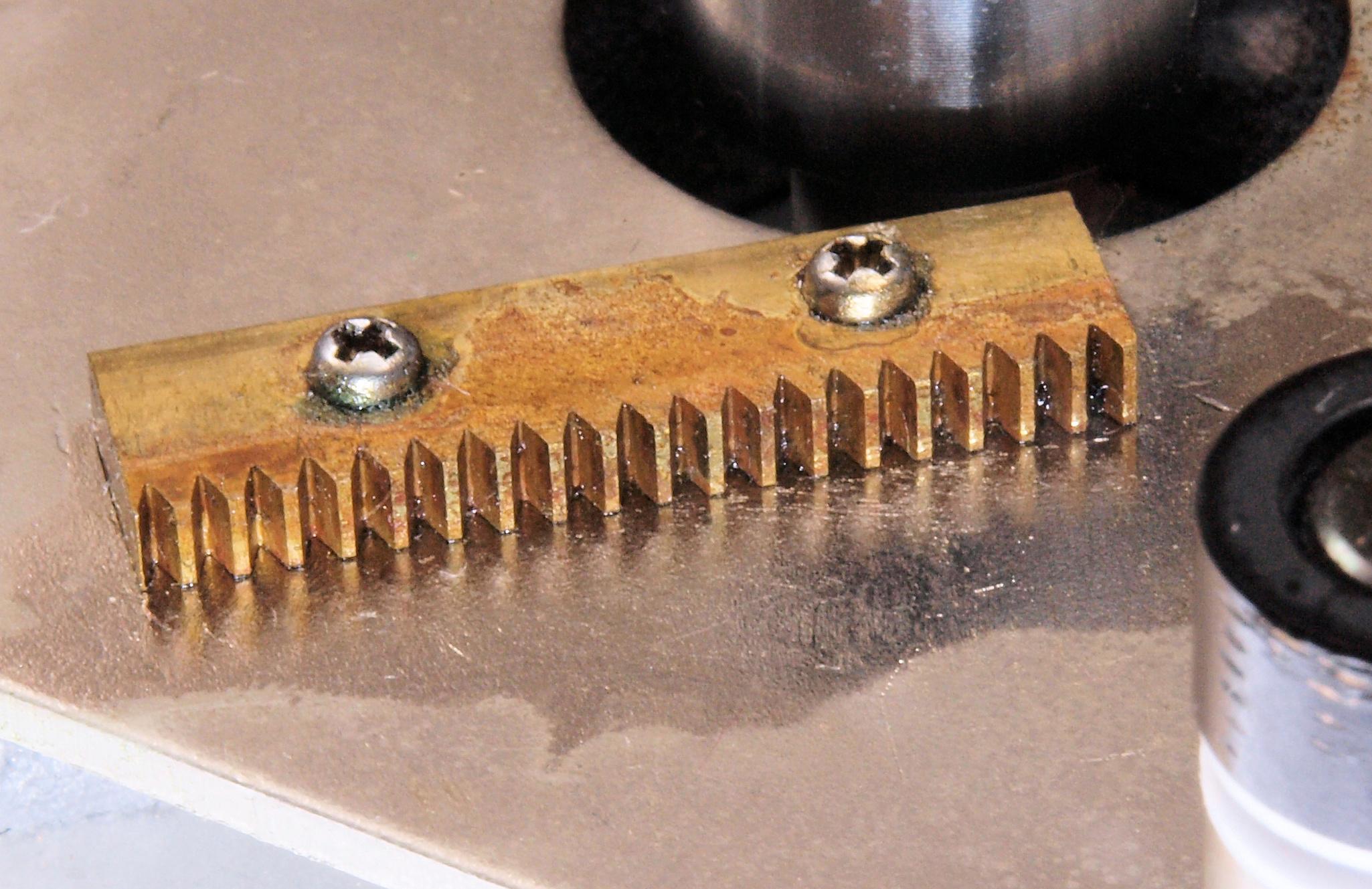 C44. 修理(清掃)中 モーター移動用ラック歯車。 固着した古いグリスを撤去。
