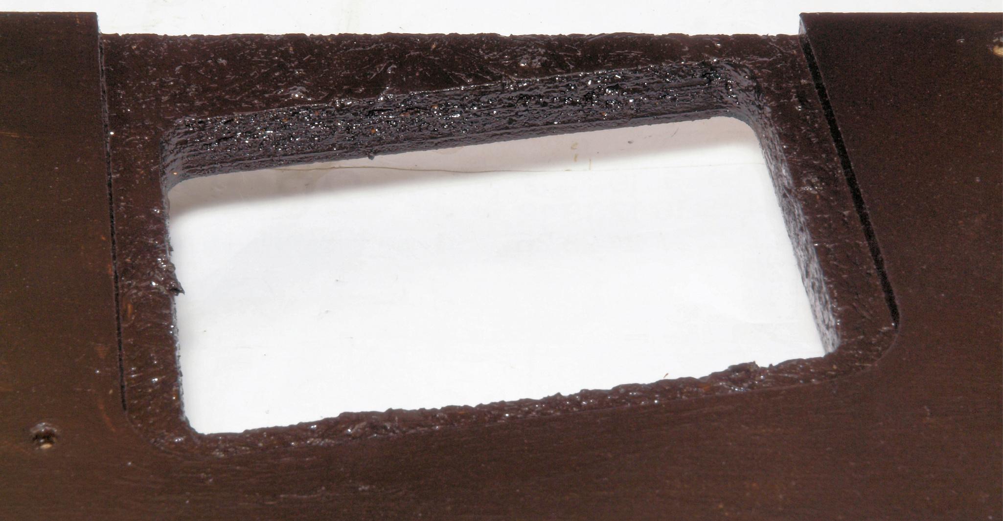 WB3. 修理後 下蓋のアーム取り付穴。 乾燥後さらにペンキを塗る。