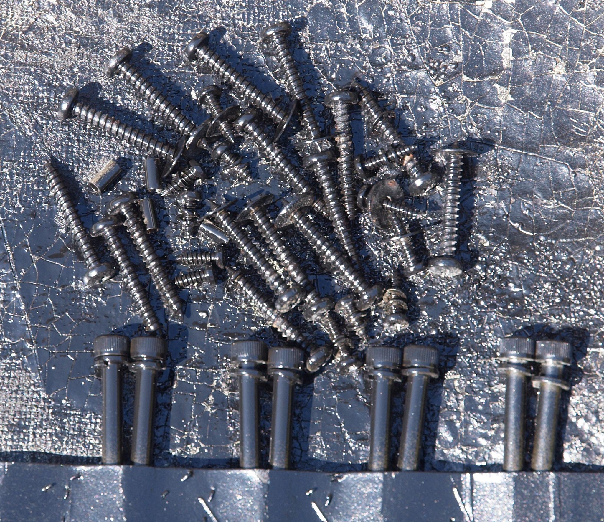 WD2. 修理中 架台止めビス、下蓋等止めネジ、ラッカーを吹く。 乾燥後方向を変えて、さらに塗る。