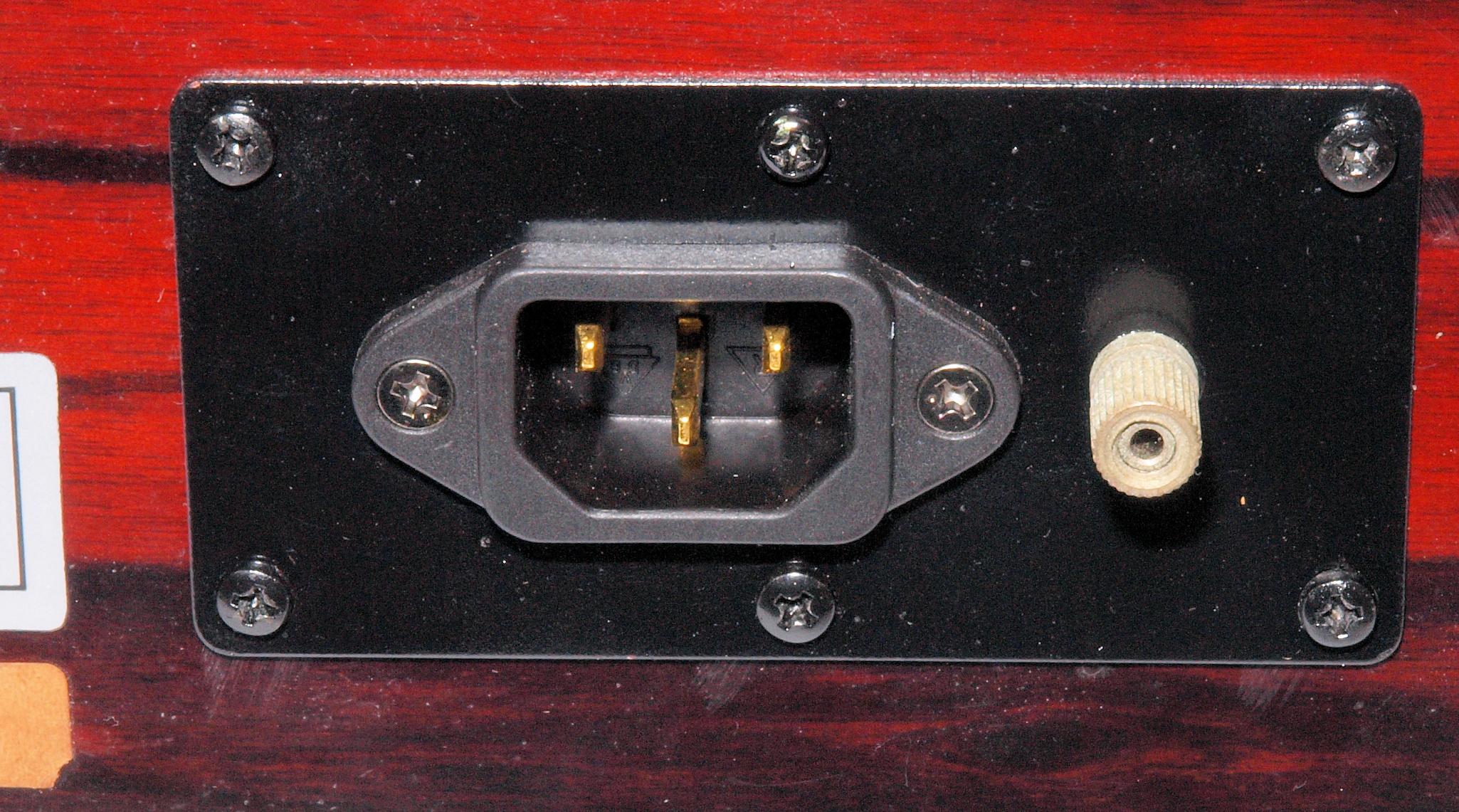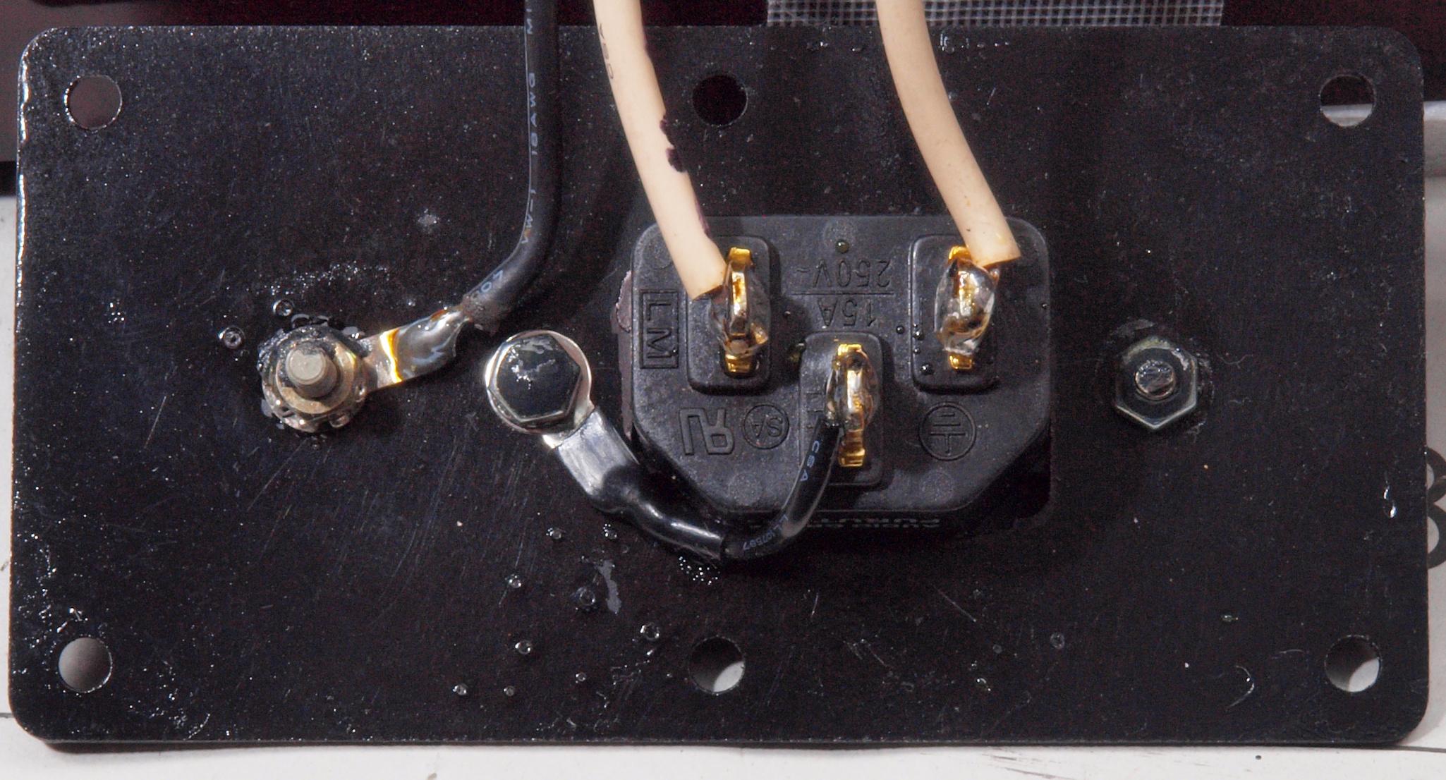 A15. 点検中 後から見る、電源ソケット。アース接続端子交換。 3Pインレットに交換。