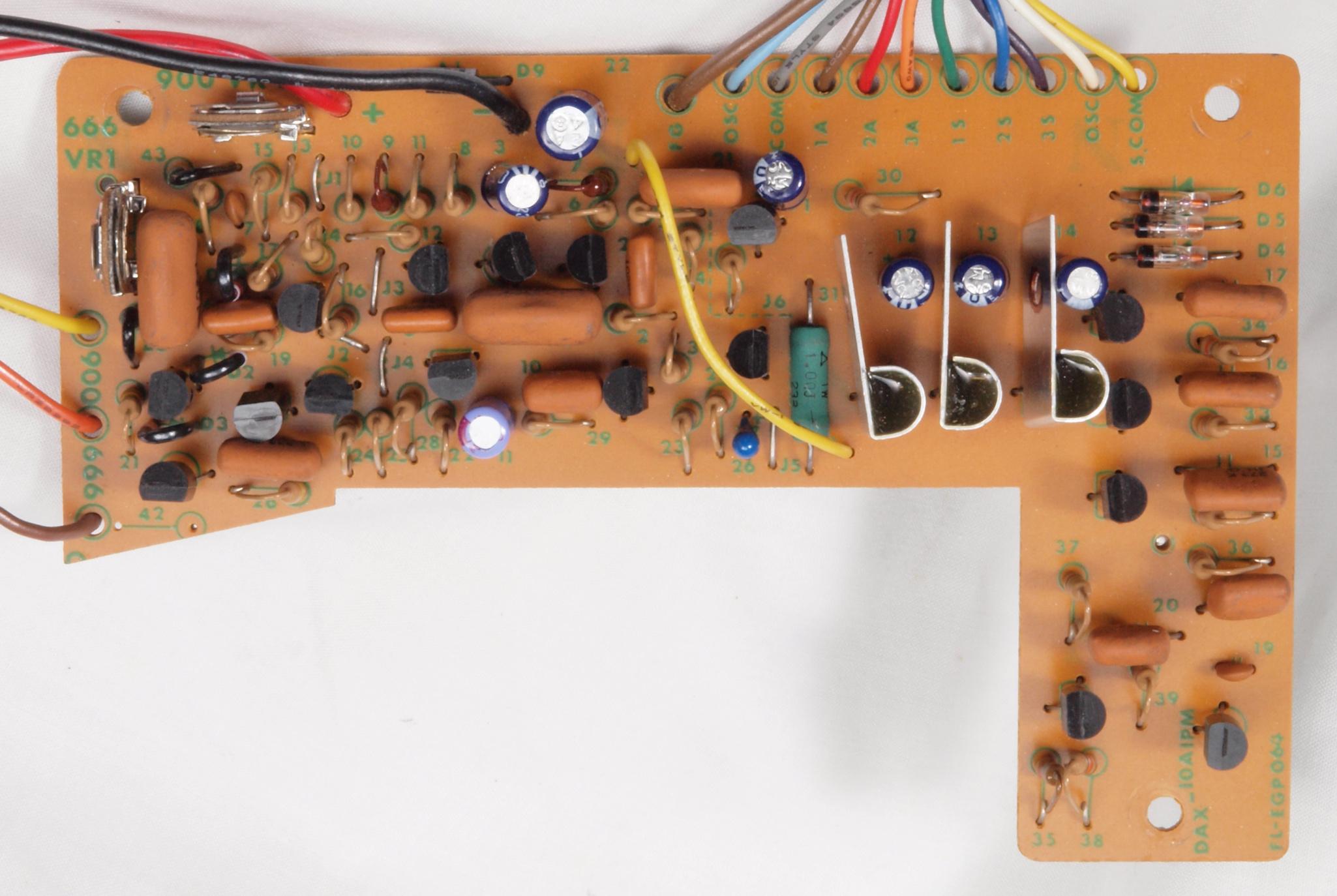 C12. 修理後 制御基板 TR(トランジスター)8個、半固定VR2個、電解コンデンサー7個、フイルムコンデンサー1個交換