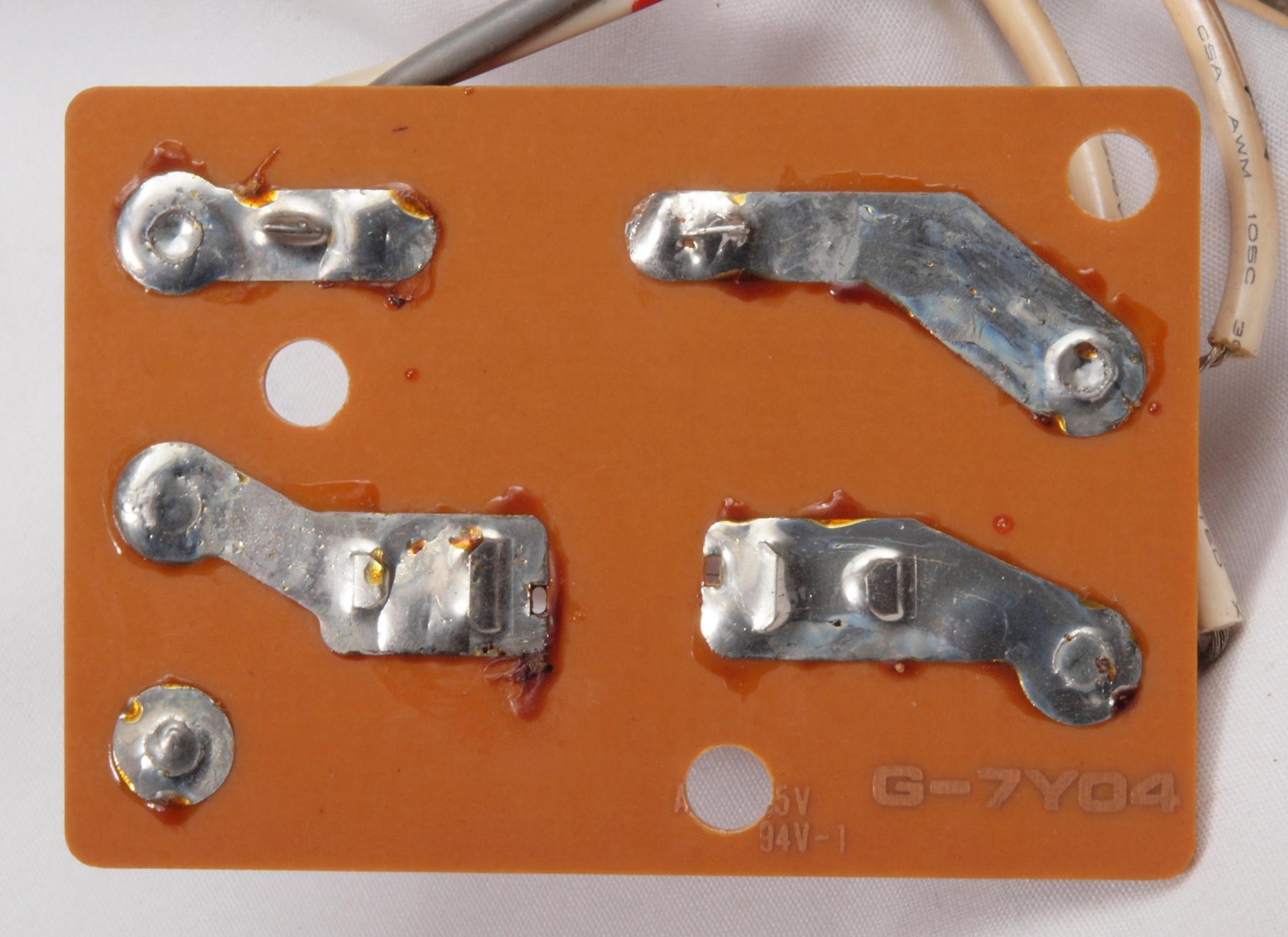 W74. 修理前 電源ソケット、端子板取付け穴、反対側。