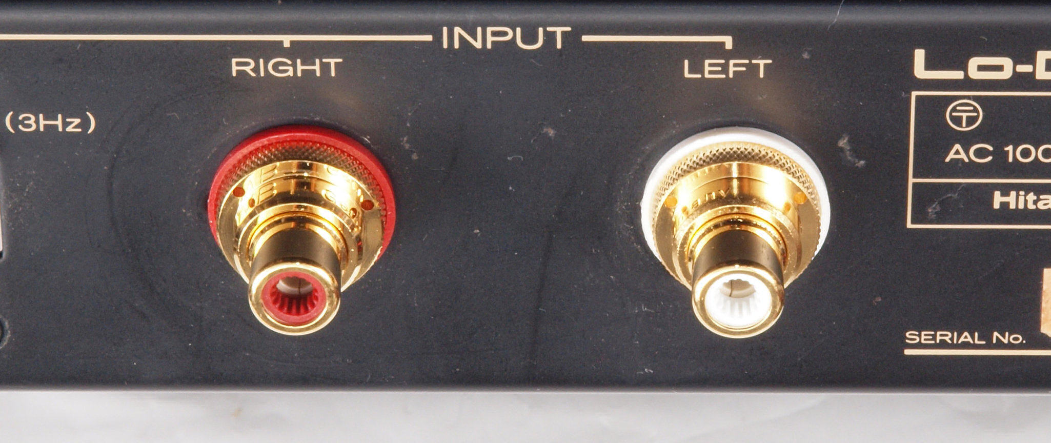 | A614. 点検中 入力RCA端子。 WBT−0210Cuに交換可能です。 |